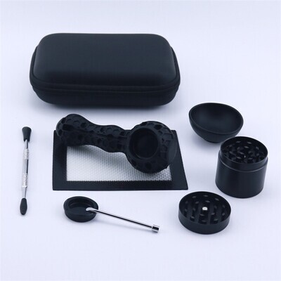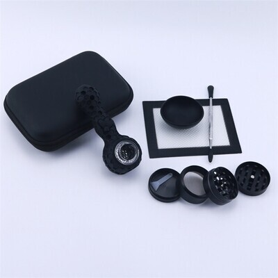 This 420 stoner smoking kit makes an awesome gift for any weed smoker. The set includes a quality metal grinder, a silicone honey comb style smoking pipe which comes with a quality Pyrex glass bowl for herb, weed or tobacco smoking as well as a dab nail. The set also has a quality dabbing metal tool with silicone tips, heat resistant dab mat as well as a silicone bowl and a handy carry case.