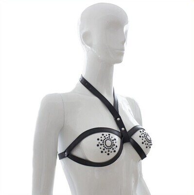 This is a sexy BDSM role play open cup bra, this is SM breast gear great for flirting. This harness can be used for dress-up adult parties and also great for action role playing. The harness has buckle closures which can adjust the tightness according to your body shape