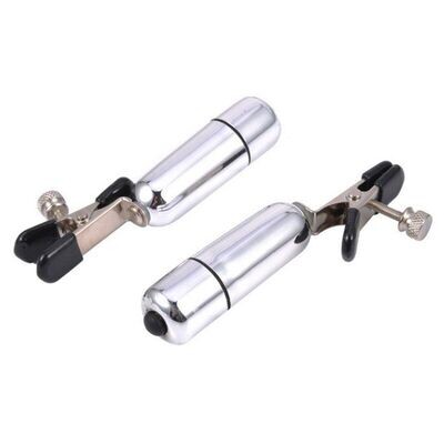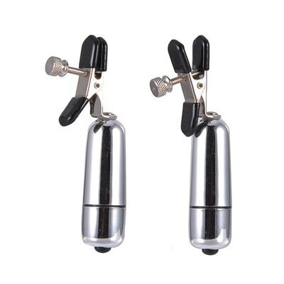 Nipple Play: Silver Vibrating Bullet Nipple Clamps Pair for Intense Stimulation