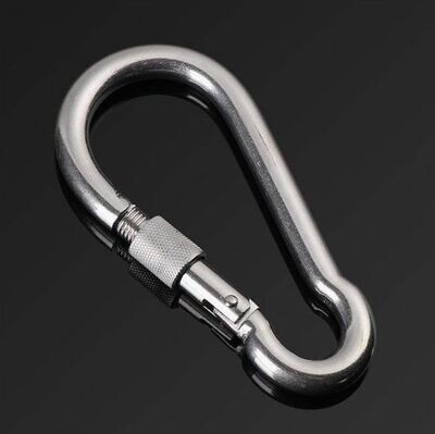 The 80mm hardened steel carabiner spring snare is a smaller and tough equipment embellishment intended for outside or BDSM use. The spring-loaded gate mechanism makes it simple to attach and remove objects. This 80mm carabiner spring hook is made of stainless steel that resists corrosion. It is a reliable and secure way to hang or fasten gear, equipment, and accessories while outdoors, like camping and hiking or used in BDSM play.